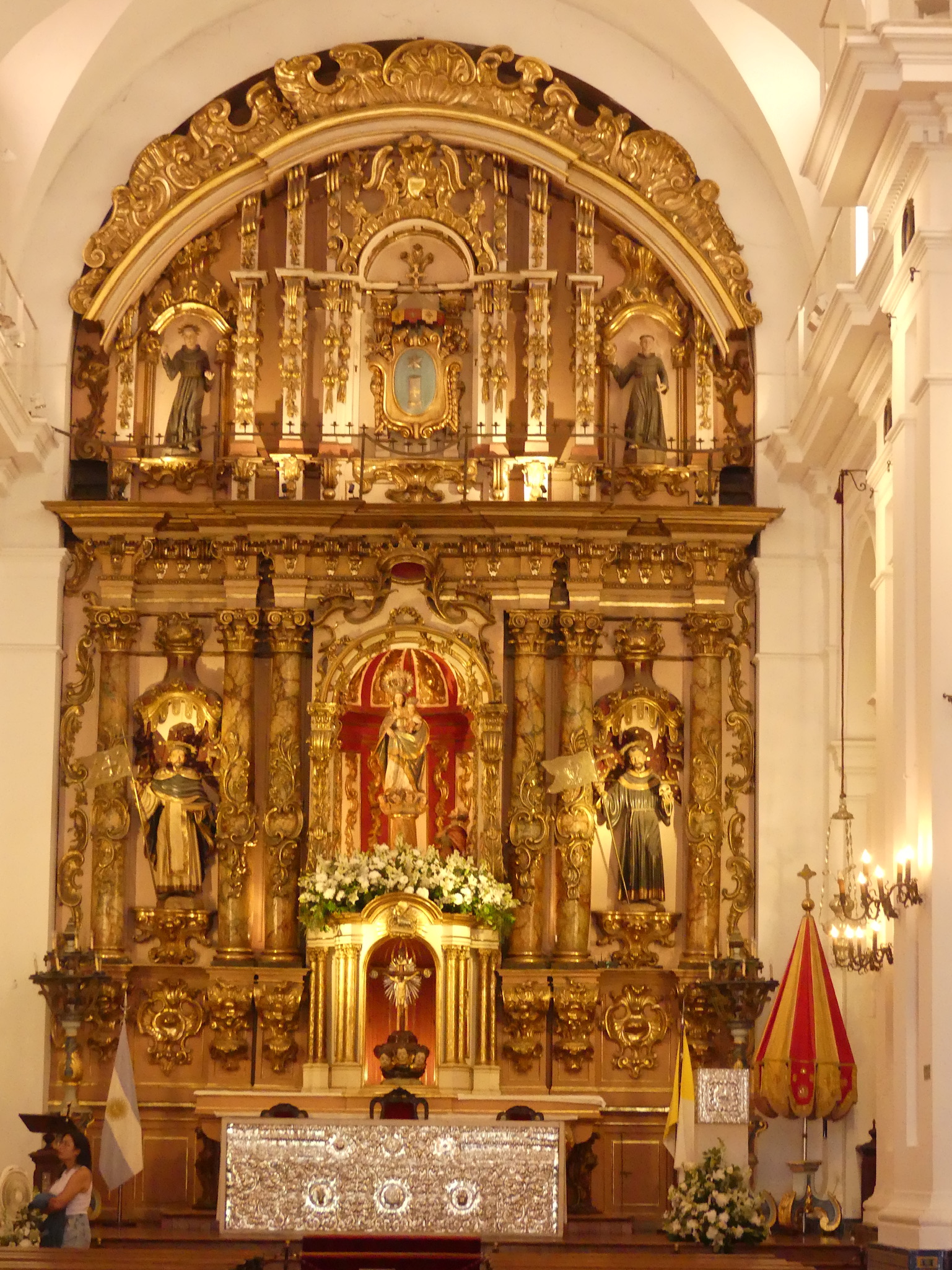 The church consists of a single nave with a well-developed transept, covered by a vaulted ceiling. The lateral chapels are shallow. In its interior, the main altarpiece stands out (baroque), with the titular image in the center and at its sides two Franciscan saints. The main altar is a very singular piece, with Inca ornamentation of Alto Peru, very richly worked in silver.