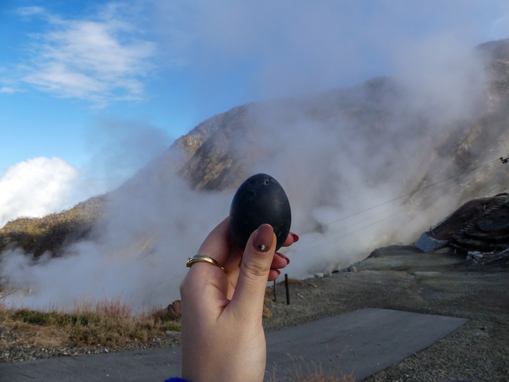 We stepped off the Hakone Ropeway: the air smelled of sulfur! One of the highlights was trying the black eggs boiled in the sulfuric springs. Locals say eating one adds seven years to your life. While we can’t confirm that, it’s definitely a fun tradition worth trying! And on clear days, Owakudani offers one of the most breathtaking views of Mt. Fuji you’ll ever see. We also stopped for lunch and couldn’t resist the famous volcanic curry served at the Owakudani restaurant.